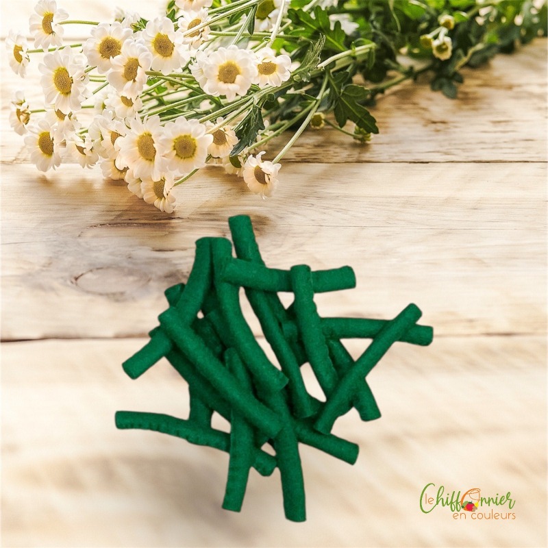 Dimensions adaptées : Un haricot vert en feutrine mesure 8 cm de long et 1 cm de large, idéal pour les petites mains des enfants.